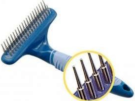 Pavilnas metāla suka ar plastmasas uzgalīšiem suņiem un kaķiem 10x6 cm -metāla sariņi ar aizsargājošiem plastmasas uzgaļiem -ērts rokturis -uztur apmatojumu veselīgu un spīdīgu Izmērs: 10x6 cm