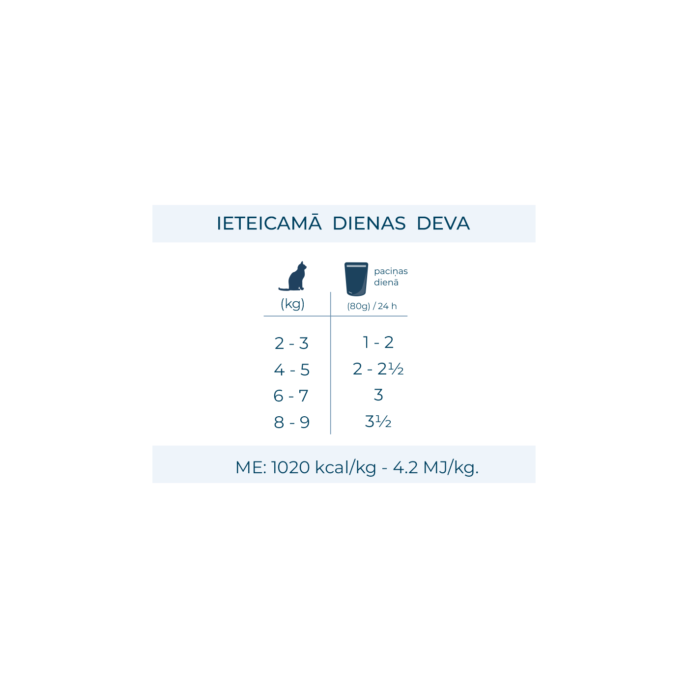Barošanas norādījumi: skatīt tabulu.