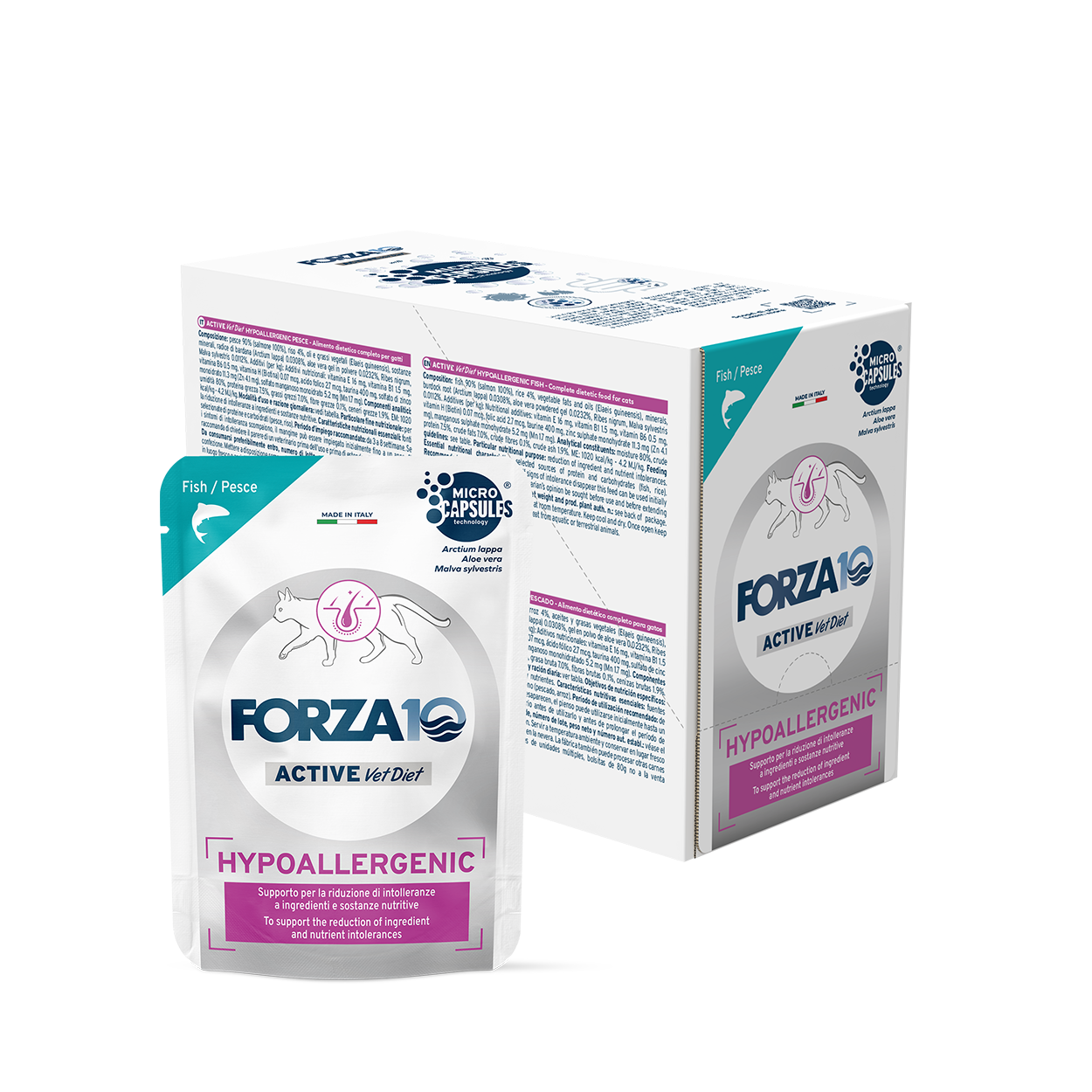 Forza10 Active VetDiet Hypoallergenic ar zivi mitrā barība kaķiem 12x80g