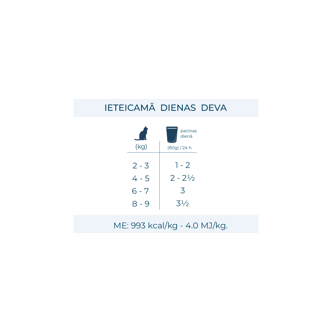 Barošanas norādījumi: skatīt tabulu.