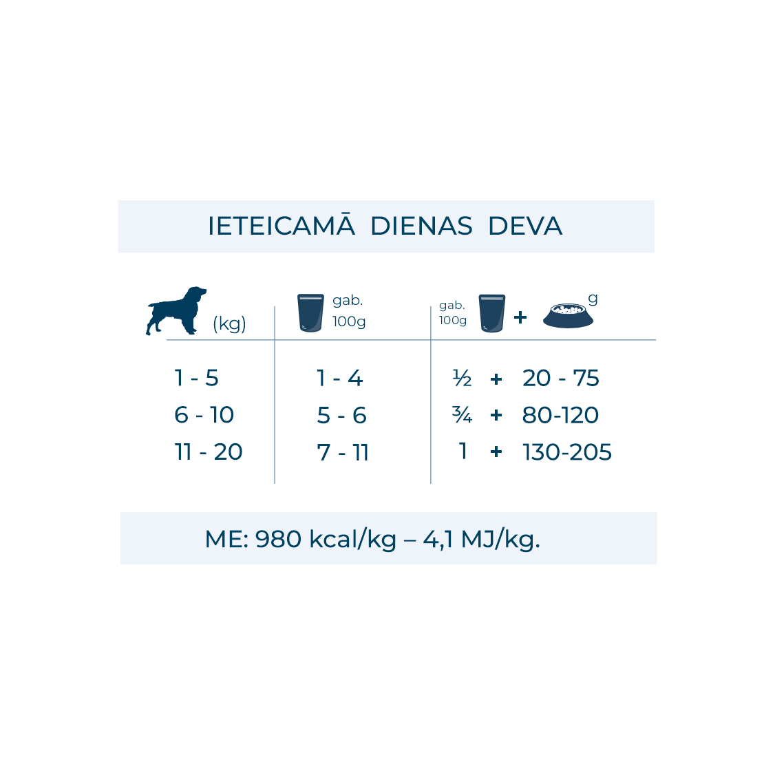 Barošanas norādījumi: skatīt tabulu.