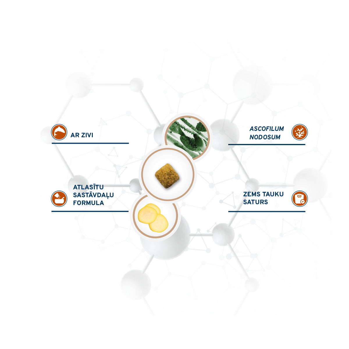 Sastāvā tikai viens alternatīvs dzīvnieku proteīna avots: zivs proteīns ar augstu bioloģisko vērtību un biopieejamību.