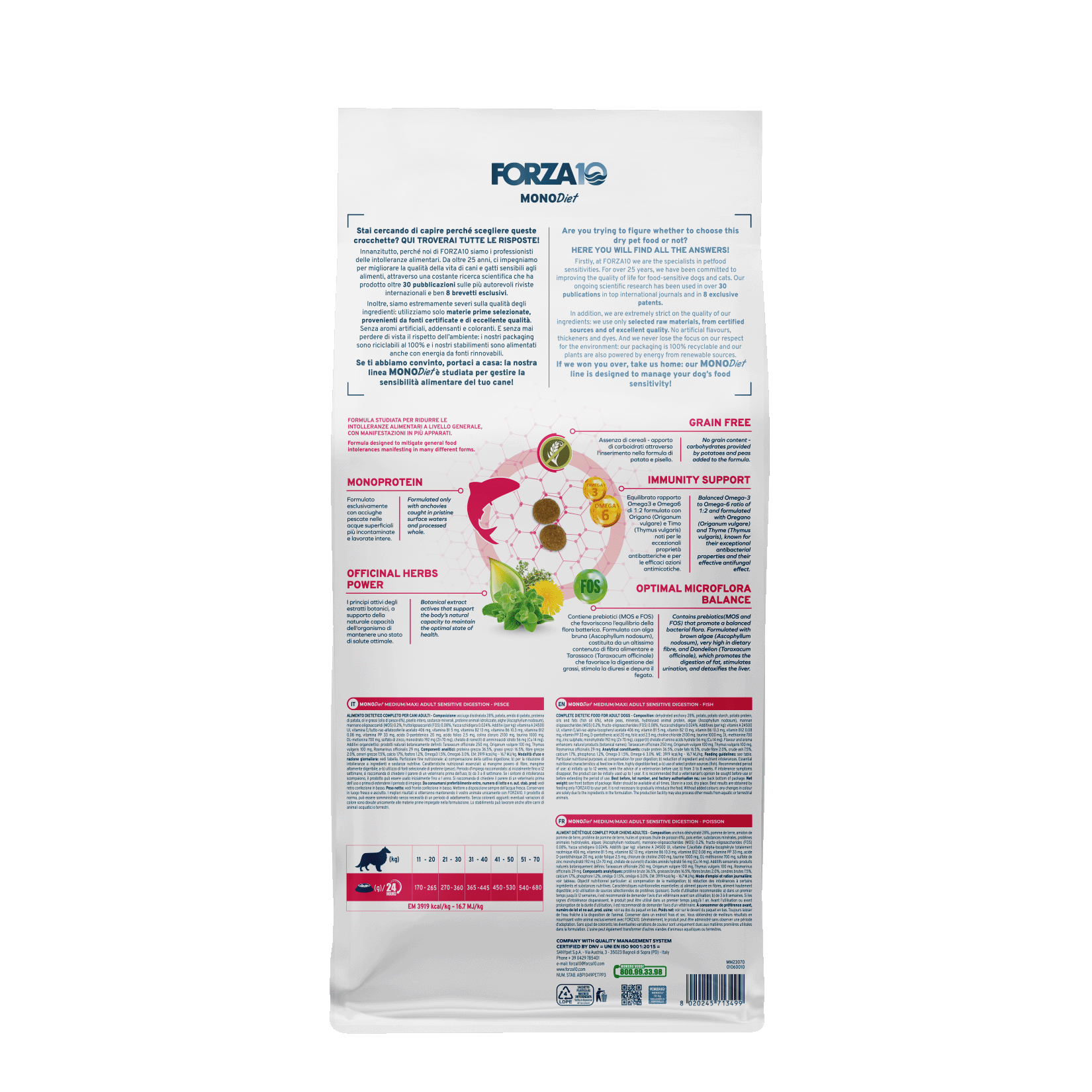 Forza10 MonoDiet Sensitive Digestion Medium /Maxi Adult ar zivīm 10kg
